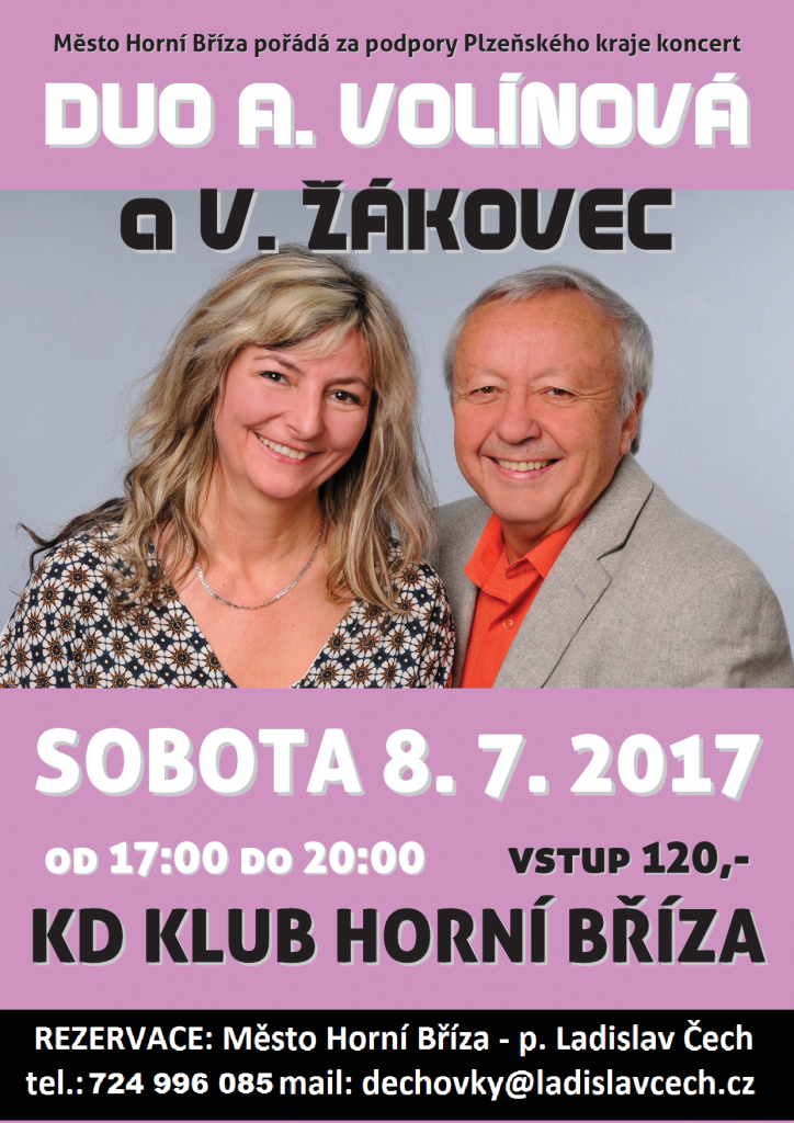 Město Horní Bříza za podpory Plzeňského kraje pořádá koncert - DUO A. VOLÍNOVÁ A V. ŽÁKOVEC