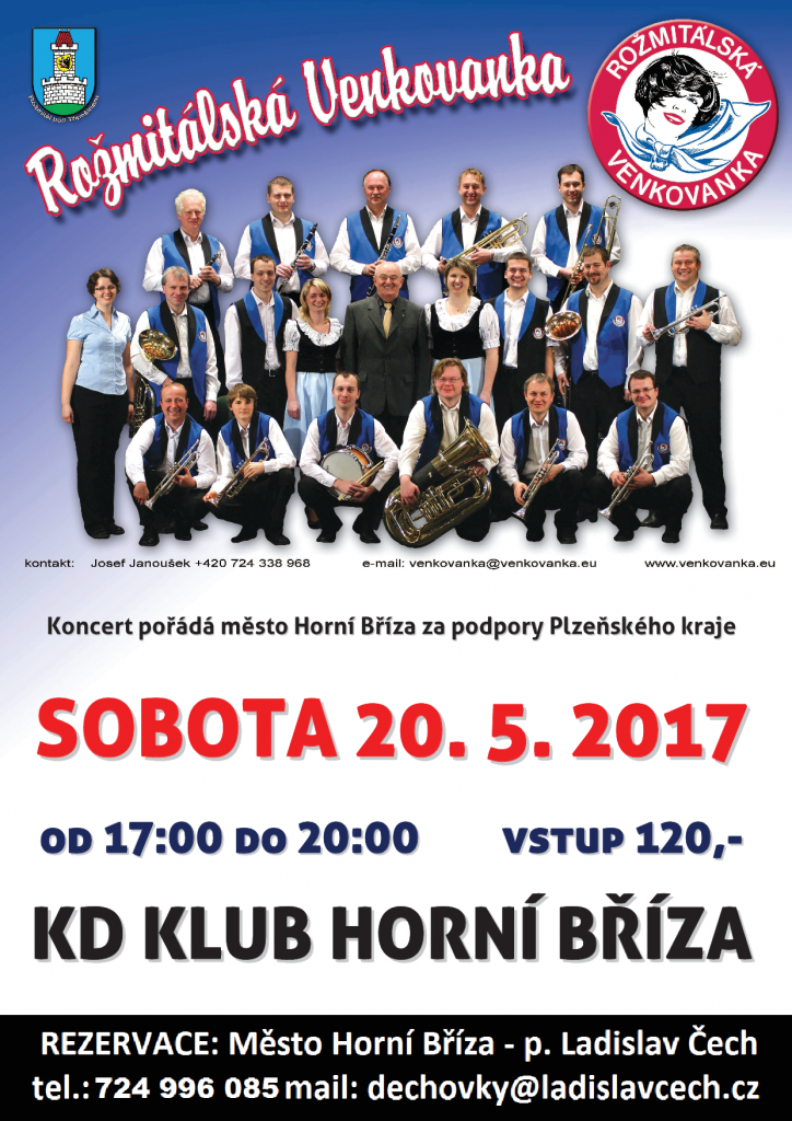 Město Horní Bříza za podpory Plzeňského kraje pořádá koncert Rožmitálské Venkovanky.